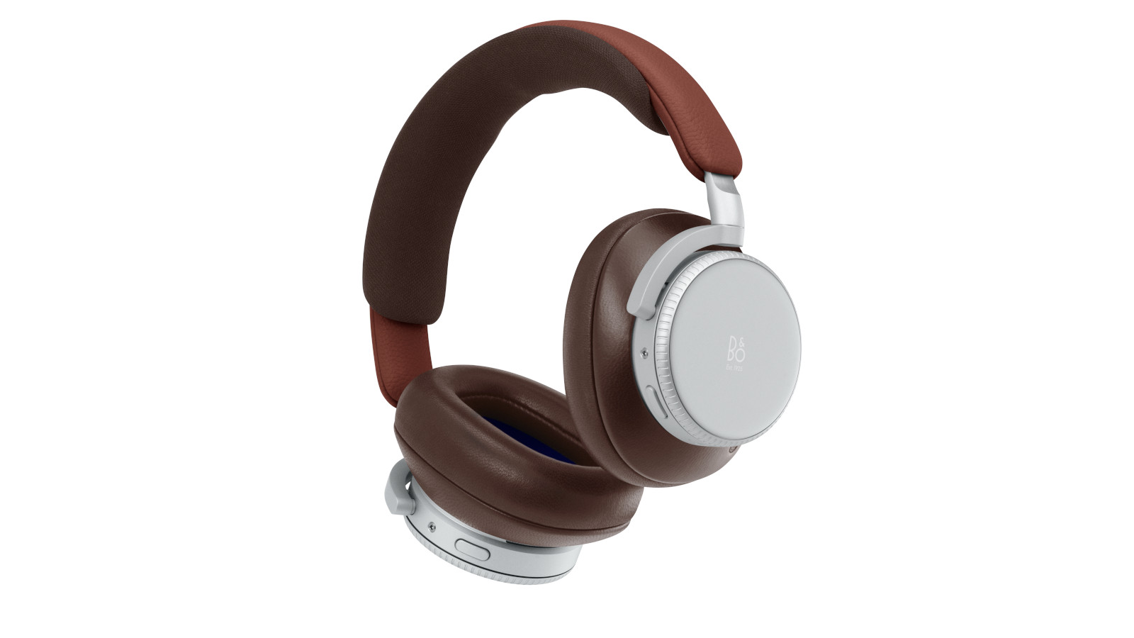 The Beoplay H100 elevates personal listening with titanium drivers optimized for Dolby Atmos and class-leading noise cancellation. Its Century Brown finish features a vibrant Century Red outer leather headband paired with Chestnut Brown inner band and cushions, accented by Century Blue details. A natural silver glass disc bears the anniversary logo, while a matching Century Red leather pouch with blue accents makes it a portable heirloom.